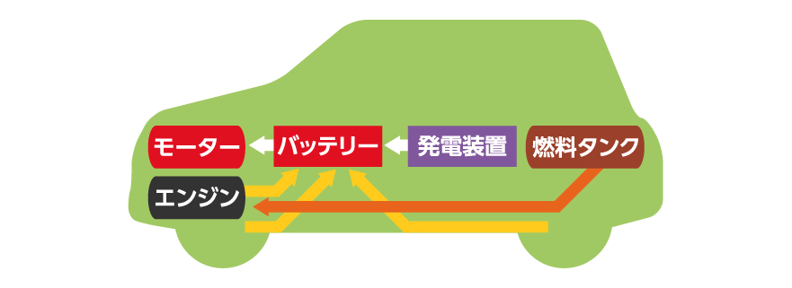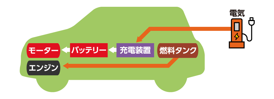 ハイブリッド車と同様の機能・特徴に加えて、外部からの充電も可能です。モーターのみで走行できる距離が長く、ハイブリッド車よりもさらにCO₂排出量を減らせます。EVと同様、バッテリー走行による航続距離を延ばすためのバッテリー技術の改良が進められています。