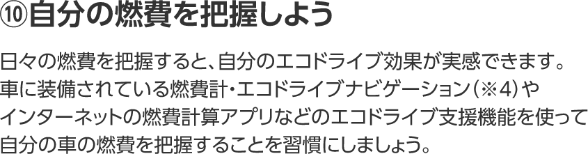 エコドライブのポイントを10の取組に分けて示したのが「エコドライブ10のすすめ」です。