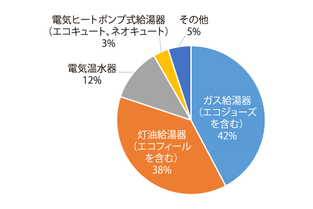 給湯機器は2000年代以降、エコキュート(電気ヒートポンプ式給湯器)、エコジョーズ(高効率ガス給湯器)、エコフィール(高効率灯油給湯器)などの登場によって、従来と比べて相当な省エネが実現されています。もし20年、30年前の機器をお使いの場合は、給湯機器を交換するだけでも省エネにつながります。
