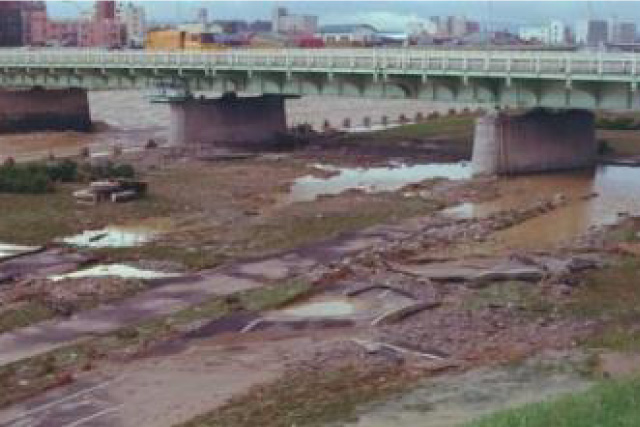 <豊平川の1981(昭和56)年8月洪水での浸水の様子>