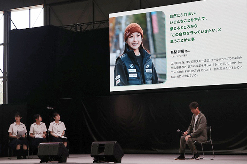 トークセッションでは「ウィンタースポーツ競技自体やそれ以外で地球温暖化の影響を感じること」や