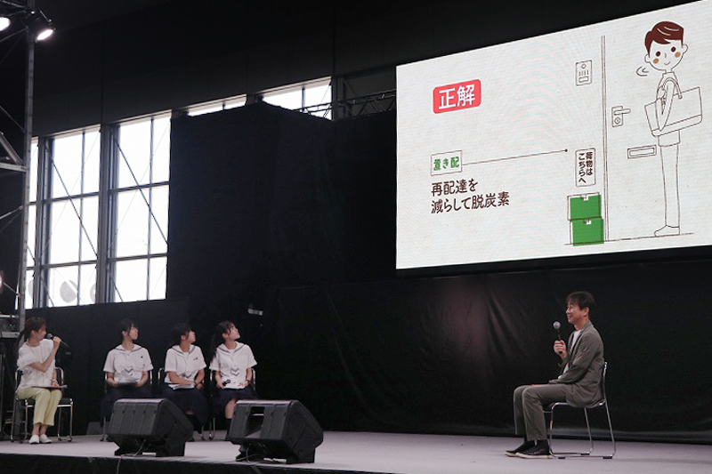 「ウィンタースポーツ選手出身として環境面で目指すこと」をお話しいただき、その後会場の参加者を交えた脱炭素のクイズを行いました。