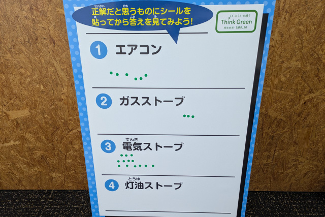 暖房や給湯機器を灯油式から電気やガス式に置き換えていく「熱源転換」の理解促進をはかるためにクイズを実施しました。