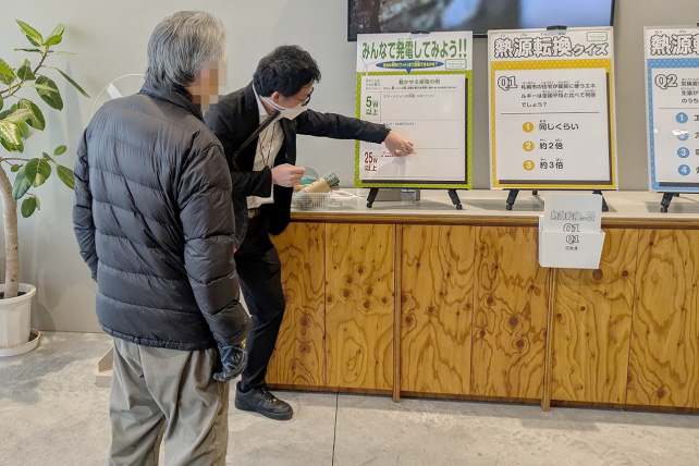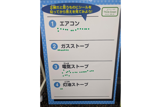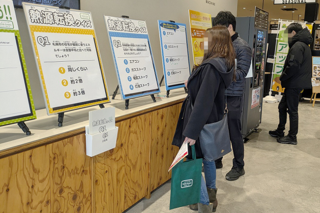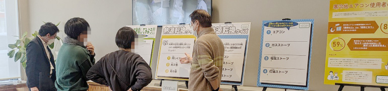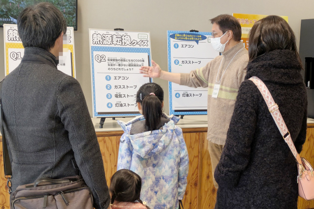 暖房や給湯機器を灯油式から電気やガス式に置き換えていく「熱源転換」の理解促進をはかるためにクイズを実施しました。