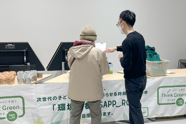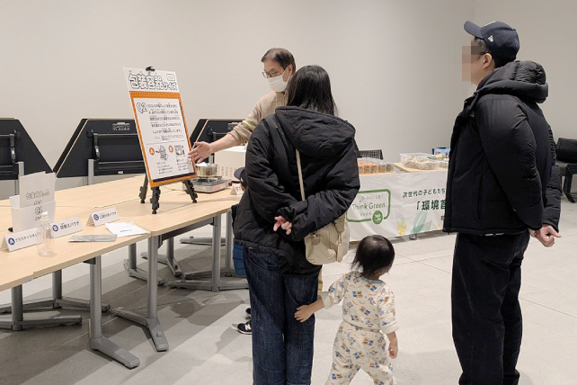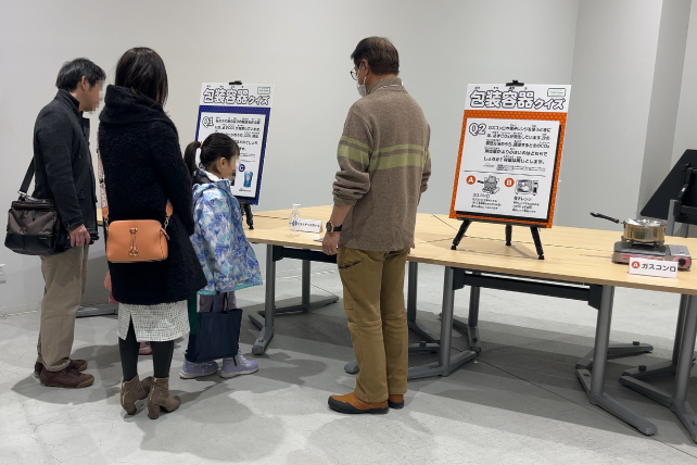 包装容器の製造過程や、調理過程で出るCO2排出量には違いがあることがわかるクイズを実施しました。