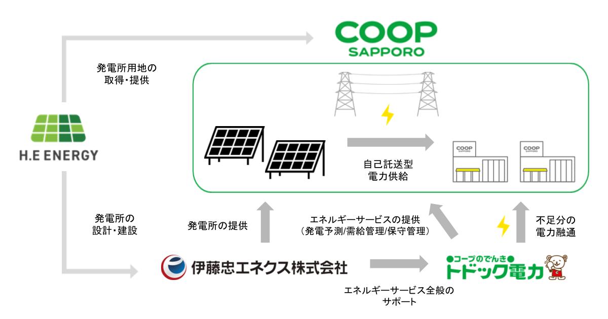 従来から木質バイオマスを中心とした再エネ発電所と提携し、調達していましたが、使用量が非常に大きい店舗向けの電力を自分たちでもつくろうと、2023年に太陽光発電所の建設に着手しました。50kW未満のコンパクトな低圧発電所を道内200カ所に設置する予定で、2024年10月末現在で49カ所が稼働し、200カ所すべてが稼働した際(2025年9月末予定)には全店舗で使用する電力の14%をまかなう見込みです。