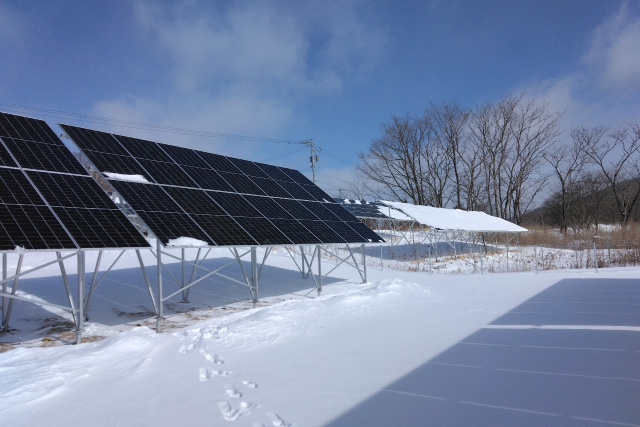 コープさっぽろではこうして培ってきた経験を生かし、農地に太陽光発電設備を設置して太陽光を農業生産と発電を同時に行うことができる、営農型の太陽光発電にも今後取り組みたいと考えています。この営農型の場合は、両面受光型のパネルを東西に向けて地面に対して垂直(90度)に設置することから、一般的にパネルを南向き・30度に設置した場合と比べて発電効率こそ落ちますが、日が昇って沈むまで発電することができます。営農型の実現に向けては、農地を太陽光パネルの設置に使う一時転用の許可など農地法に基づくさまざまな規定があります。コープさっぽろではこうした法規制への対応を含めて、親しくさせていただいている農家のみなさんとお話をしながら進めていけたらと考えています。