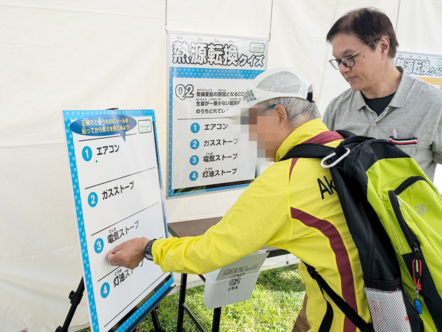 暖房や給湯機器を灯油式から電気やガス式に置き換えていく「熱源転換」の理解促進をはかるためにクイズを実施しました。