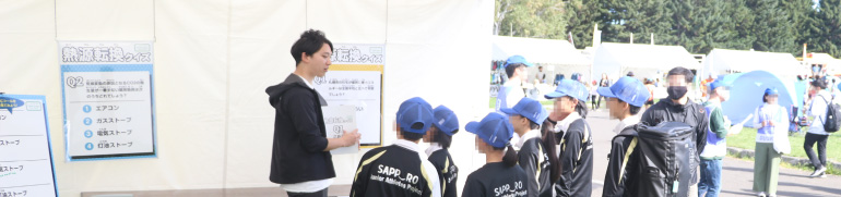 札幌市の住宅が使うエネルギーの特徴や暖房器具別のCO2排出量などについてクイズで楽しく学習しました。